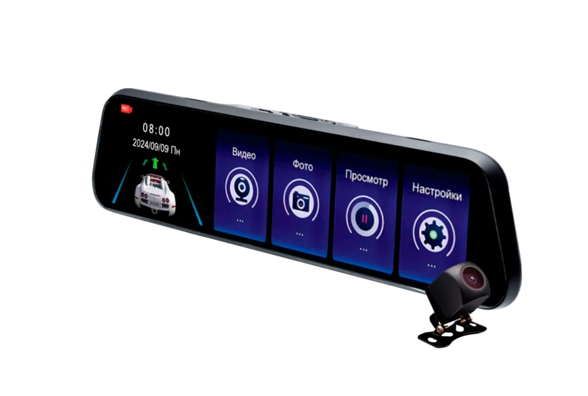 Автомобильный видеорегистратор AV-607 - это зеркало-регистратор с широкоформатным 9.6-дюймовым дисплеем.