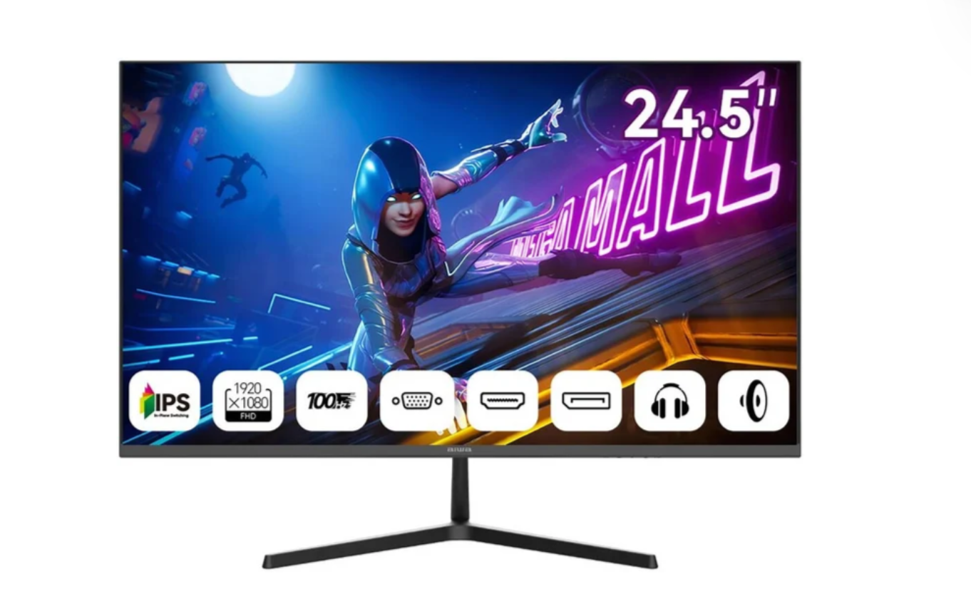 24.5", 1920x1080, 16:9, IPS, 100 Гц, яркость 300 нит, динамики, HDMI+DisplayPort+D-Sub (VGA)