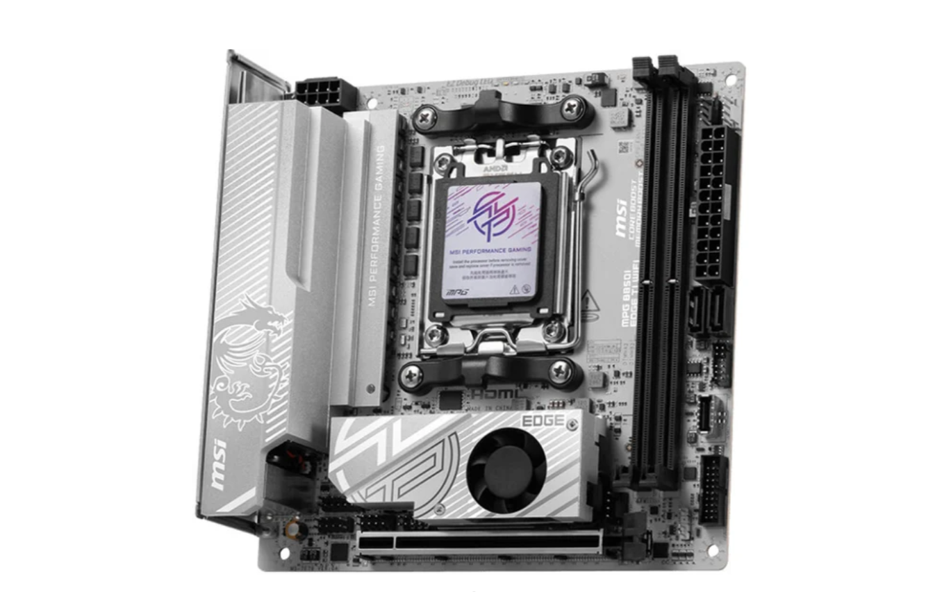 miniITX, чипсет AMD B850, память 2xDDR5/DDR5 CUDIMM до 10000 МГц, слоты: 1xPCIe x16 5.0, 2xM.2, 802.11be (Wi-Fi 7)+Bluetooth 5.4, 8+2+1 фаз питания