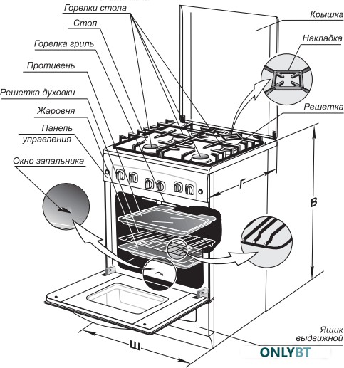 Объем духовки, л: 52