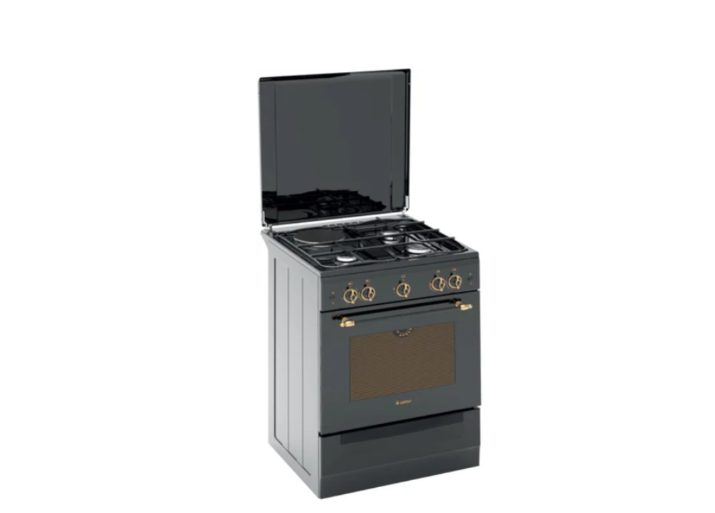 газ + электро панель + газовый духовой шкаф, газ-контроль конфорок, поверхность: эмалированная сталь, крышка из эмалированной стали, энергопотребление A, управление механическое, без таймера, размеры (ШхГхВ): 60x60x85 см, цвет черный