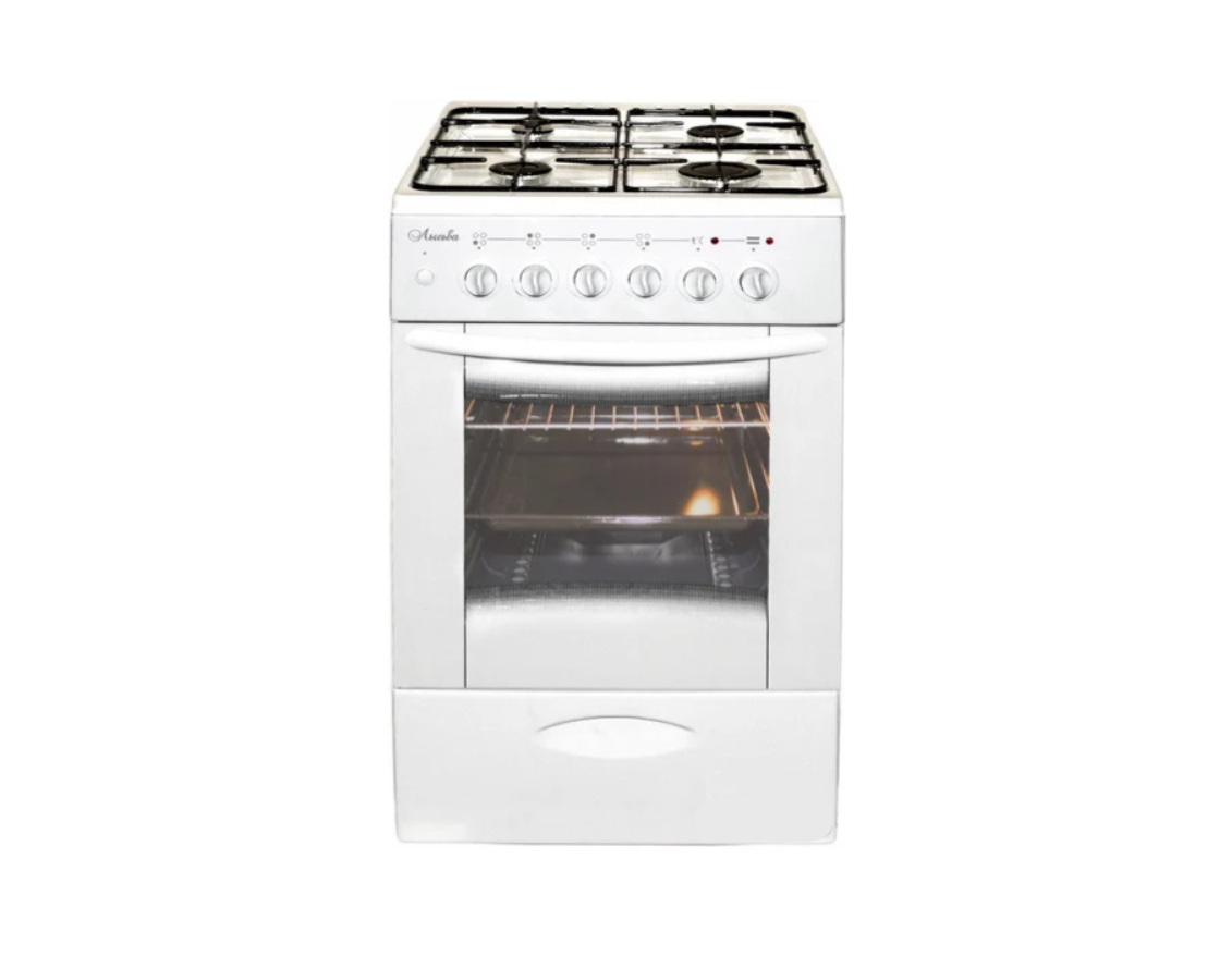 газовая панель + электрический духовой шкаф, газ-контроль конфорок, поверхность: эмалированная сталь, управление механическое, без таймера, размеры (ШхГхВ): 50x60x85 см, цвет белый