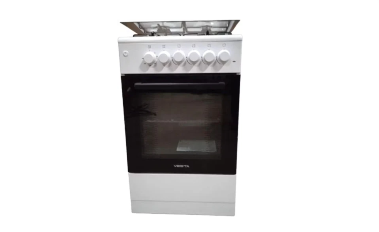 газовая панель + электрический духовой шкаф, поверхность: эмалированная сталь, крышка из закалённого стекла, энергопотребление A, управление механическое, без таймера, размеры (ШхГхВ): 50x57x85 см, цвет белый