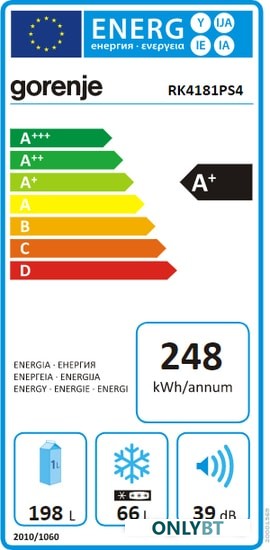 полезный объём: 264 л (198 + 66 л),