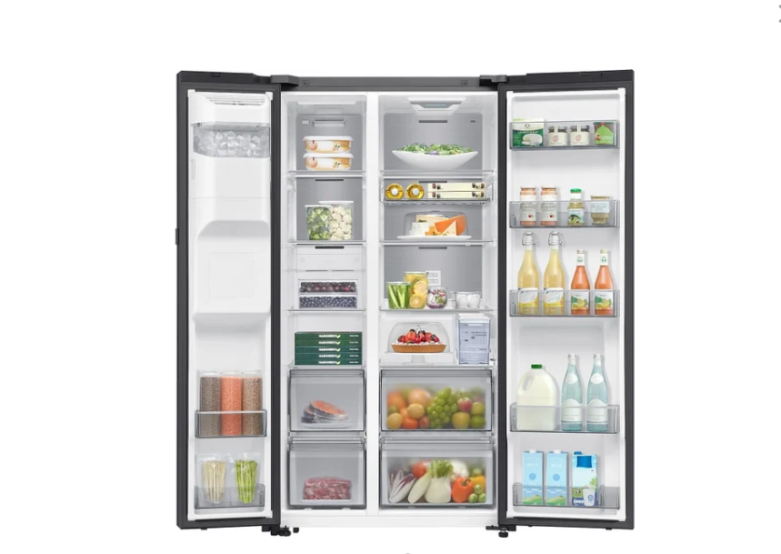 отдельностоящий, полный No Frost, сенсорное управление, класс A+, полезный объём: 594 л (392 + 202 л), инверторный компрессор, диспенсер, электропривод дверей, выдвижной/подвесной контейнер, 91.2x71.6x178.6 см, черный