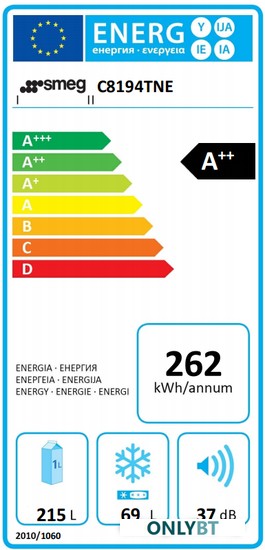 полезный объём: 284 л (215 + 69 л),