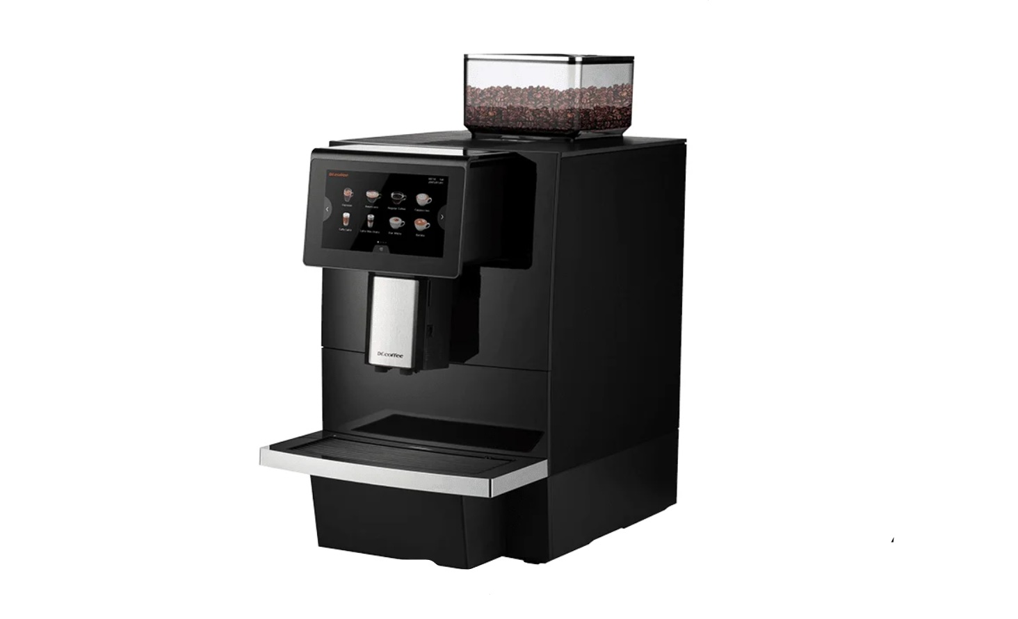 Dr.Coffee F11 Pro предлагает широкий выбор кофейных напитков, приготовление нажатием одной кнопки на ЖК-экране: эспрессо, американо, капучино, маккиато и латте и т.д. Можно добавить вспенивание молока по вашему желанию и изменить пропорции в настройках в процессе приготовления Вашего любимого напитка. ЖК-экран позволяет легко приготовить эксклюзивный кофе на заказ. Идеальное сочетание керамической кофемолки и двухкомпонентной системы заваривания дает возможности экспериментировать и создавать новые кофейные напитки, радовать Ваших клиентов или сотрудников разнообразием кофейных вкусовых сюрпризов. Широкий выбор систем водоснабжения: от съемного бункер воды, от бутыли, к водопроводу.