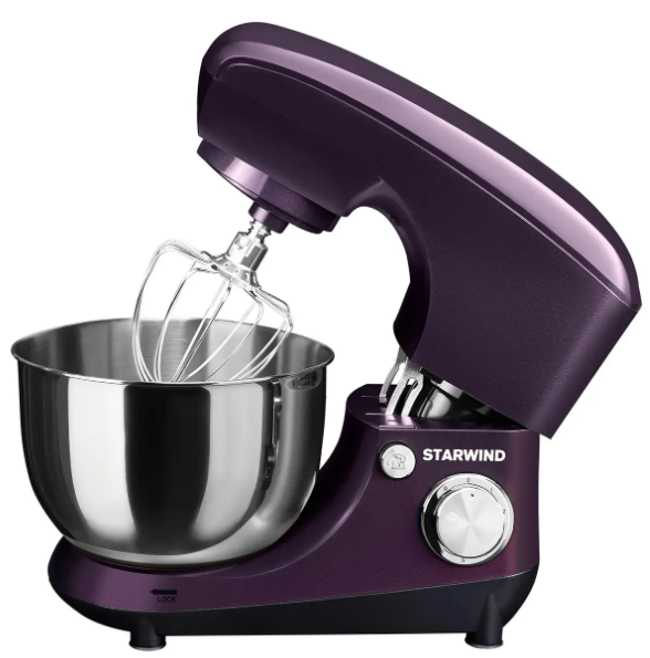 Насадки: венчик для взбивания, лопатка для перемешивания, крюк для теста,