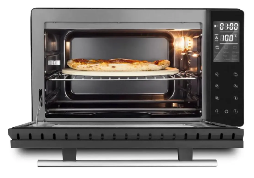 В комплекте: съемная решетка, противень, противень для пиццы, вертел