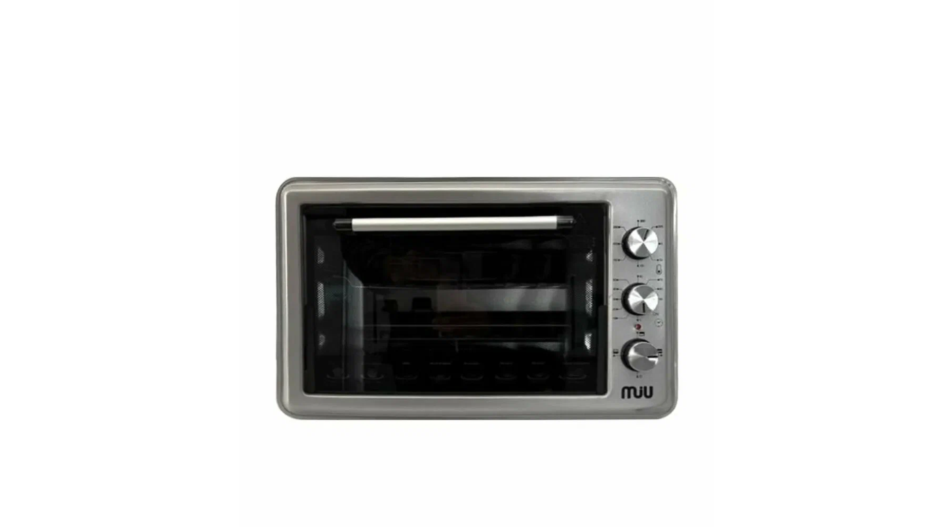 Мини печь MIU МО-40001S выполнена в сером цвете. Модель оснащена двумя нагревательными элементами мощностью 1500 Вт. В приборе предусмотрен таймер автоматического отключения, рассчитанный на 90 минут. В комплекте предусмотрено 2 противня - круглый и прямоугольный, а также решетка.