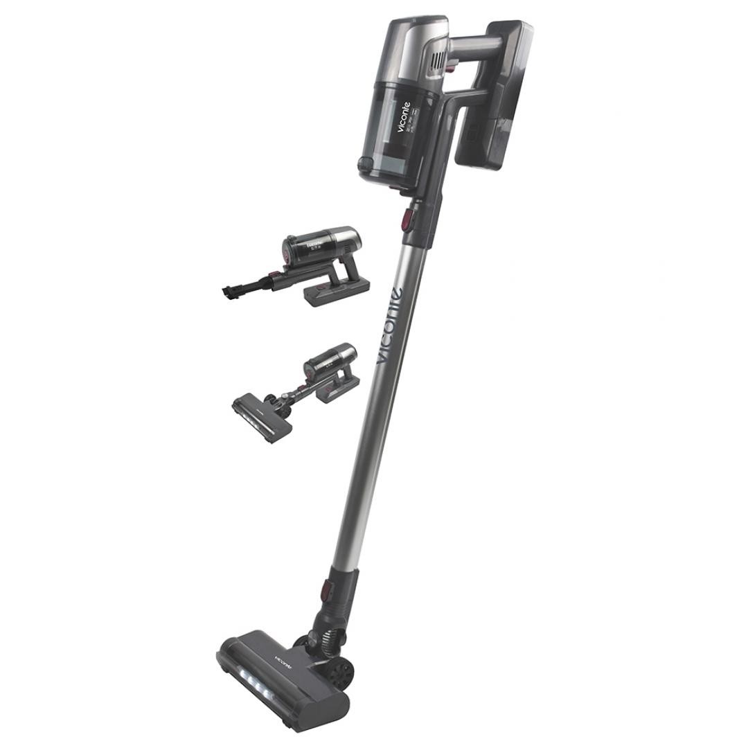 Беспроводной вертикальный пылесос Viconte VC-398 мощность 250 W, Беспроводной вертикальный пылесос, мощность 250 Вт, мощность всасывания - 150 Вт, эффективная циклонная система фильтрации, объем пылесборника 500 мл, лёгкая очистка контейнера, НЕРА фильтр - обеспечивает очистку воздуха до 99.9%, металлическая трубка, LED дисплей для индикации режима работы и зарядки, литий-ионный аккумулятор 2200 мАч, 3 уровня регулировки скорости, максимальное время работы – 40 минут, время зарядки аккумулятора – 4,5 ч, сухой тип уборки. В комплекте: турбо-щетка с LED подсветкой, насадка для труднодоступных мест, настенное крепление для пылесоса, база для зарядки аккумулятора 220-240 В.