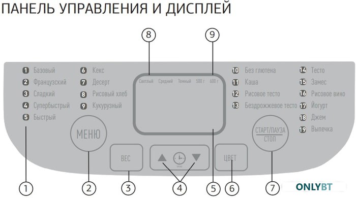 19 программ выпечки,