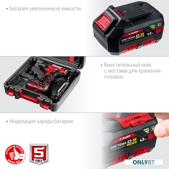 напряжение аккумулятора: 18 В,