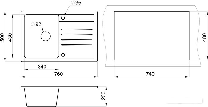 глубина чаши: 20 см,