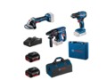 Состав набора дрель-шуруповерт, перфоратор, угловая шлифовальная машина