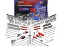 Содержит 216 предметов, включая сменные насадки для соединения и рассоединения резьбовых соединений, торцевые головки, свечные головки, оснастку бит и другие инструменты.