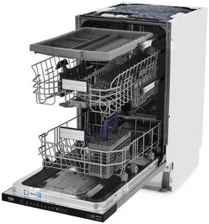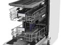 Посудомоечная машина оборудована сенсорной панелью управления, крупным дисплеем с яркими значками, на котором отображается заданная программа. Световой и звуковой индикаторы оповещают о старте и окончании процесса. Для предупреждения протечки предусмотрен датчик определения неисправностей. Модель имеет встроенную систему смягчения воды.