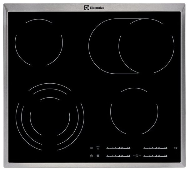 защитное отключение конфорок, индикатор остаточного тепла, кнопка блокировки панели
