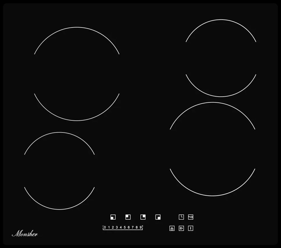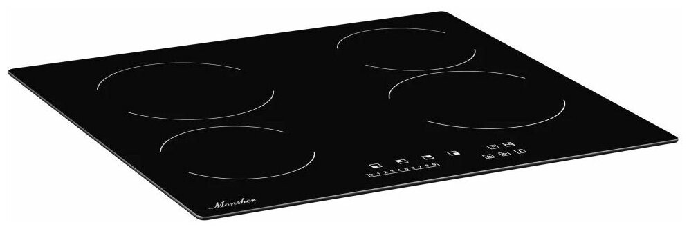 защитное отключение конфорок, индикатор остаточного тепла, кнопка блокировки панели