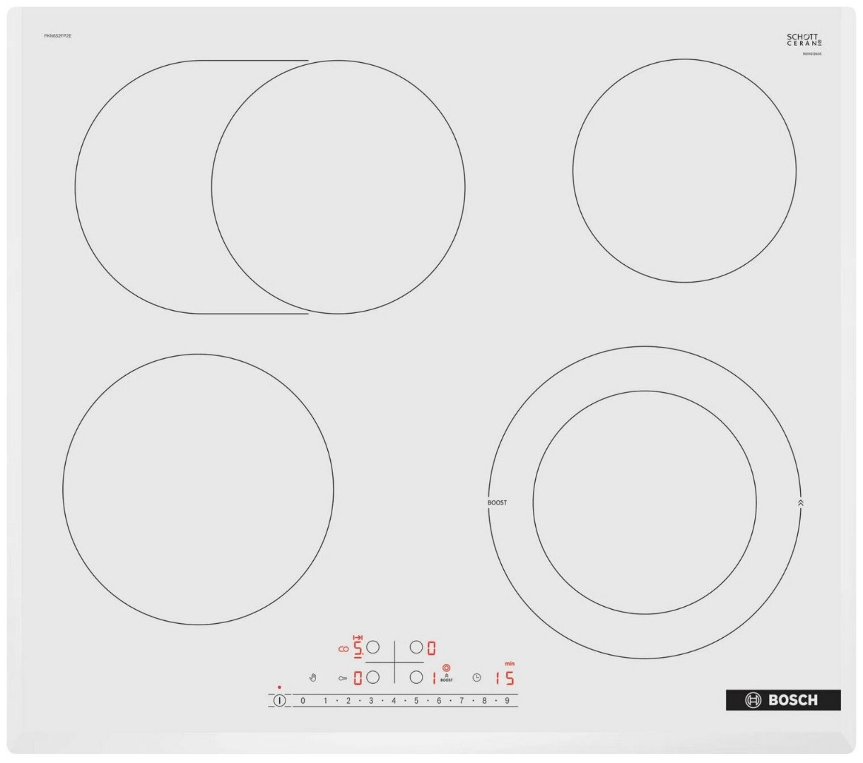 защитное отключение конфорок, индикатор остаточного тепла