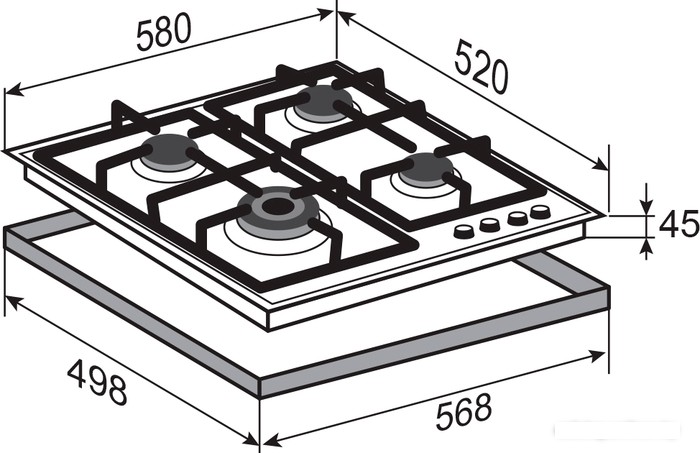 газовая на 4 конфорки,