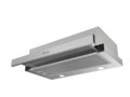 конструкция телескопическая, монтаж для встраивания, ширина 59.5 см, управление механическое/кнопочное, производительность мотора 650 м³/ч, цвет нержавеющая сталь